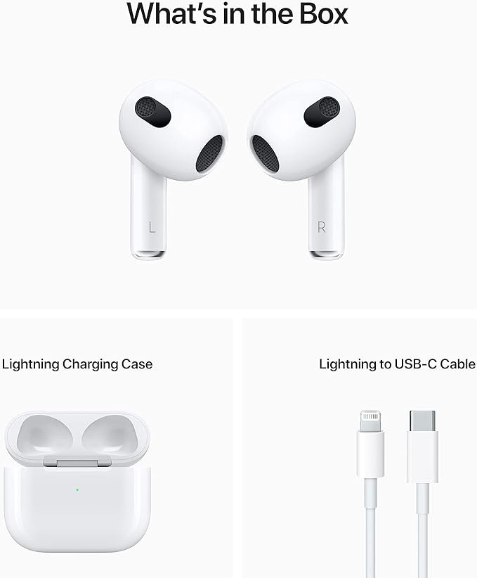 Incluye: Auriculares AirPods 3, estuche de carga Lightning, cable Lightning, documentación